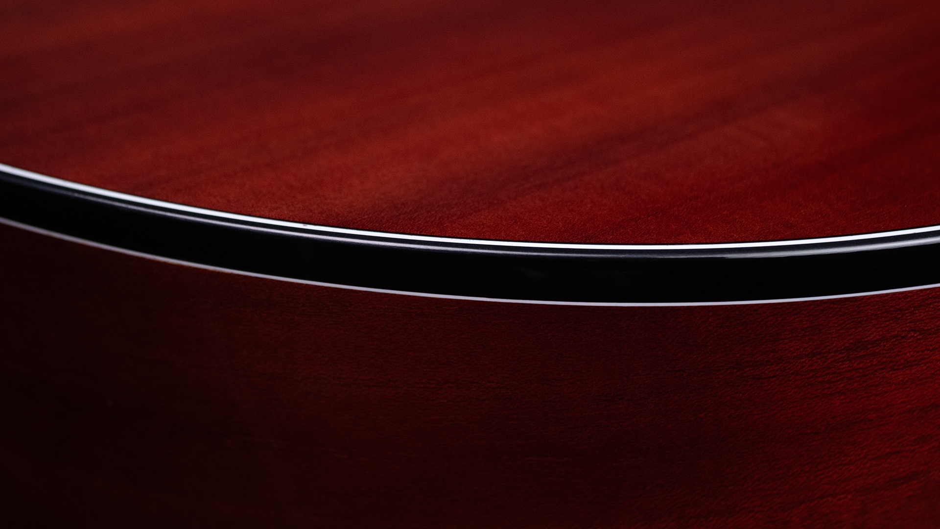 Upgraded for 2026, Nexus Thru-Cognac and Thru-Black (formerly Copper Black) models now feature the same elegant black-and-white ABS binding and figured ebony pickguard found on our acclaimed Nexus Venus Solar Flare and Nexus Neptune Coffee Brown guitars. All Nexus Neptune (Baby-Jumbo) models now include a cutaway for improved upper-fret access and enhanced playability on stage or in the studio.