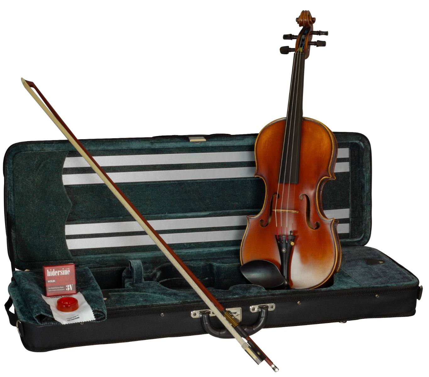 Your Hidersine Veracini violin or cello is supplied as an outfit, which is to say it is complete with what you need to get started. The Violin is supplied in an oblong, shockproof case with internal accessory compartments and an outer music pocket.