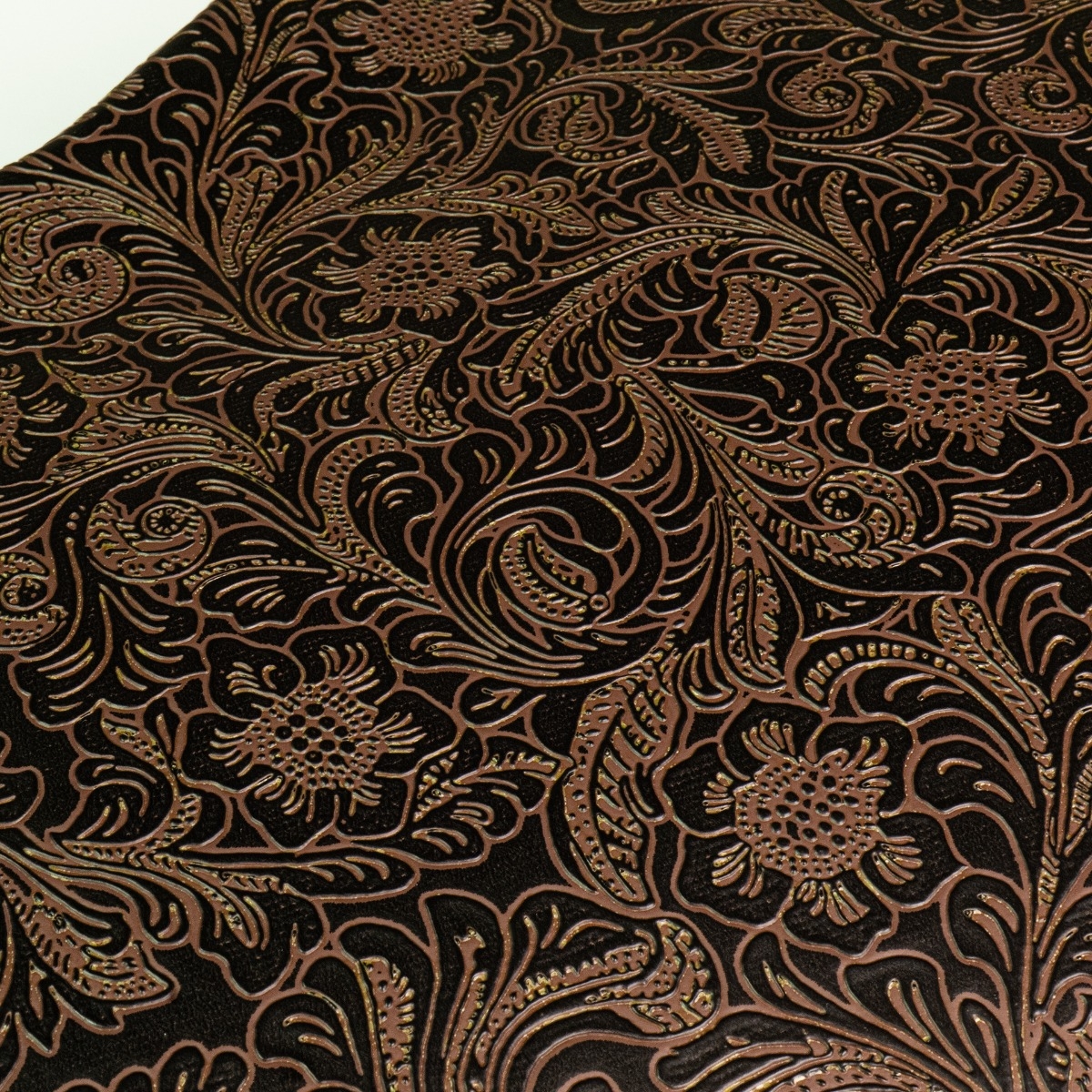 - Embossed faux leather covering (floral/petal pattern)