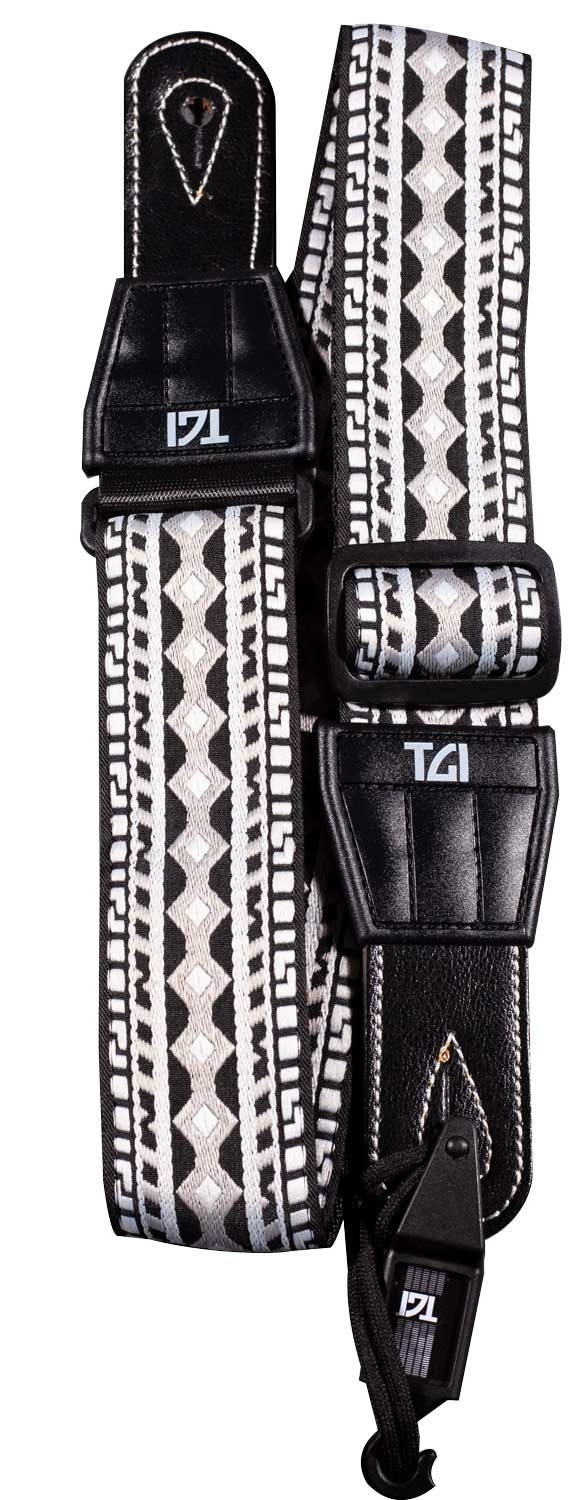 High quality woven cotton guitar strap Aztec Stitch design in Black and White.